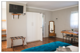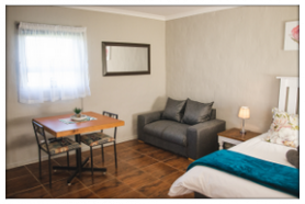 Amenities include a queen size bed with all bedding and linen provided, towels, kitchen equipped for self catering (built in hob, kettle, microwave, toaster, fridge & freezer, cutlery, crockery & glassware), dining table and chairs, private braai on the patio, free high speed Wi-Fi, USB wall plugs, flat screen TV with free Netflix, Amazon Prime & OpenViewHD, heater, fan, hairdryer, built-in clothes cupboard, digital safe and luggage rack. Our units are kitted out for loadshedding with battery backup for the overhead lights and Wi-Fi.