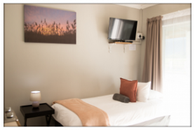 Amenities include bedding & linen, towels, kitchen equipped for self catering (built in hob, kettle, microwave, toaster, fridge & freezer, cutlery, crockery & glassware), dining table and chairs, private braai on the patio, free high speed Wi-Fi, USB wall plugs, TV with free Netflix and Amazon Prime & OpenViewHD, heater, fan, hairdryer, built-in clothes cupboard, digital safe and luggage rack. Our units are kitted out for loadshedding with battery backup for the overhead lights and Wi-Fi. Gas geysers ensure hot water at all times.